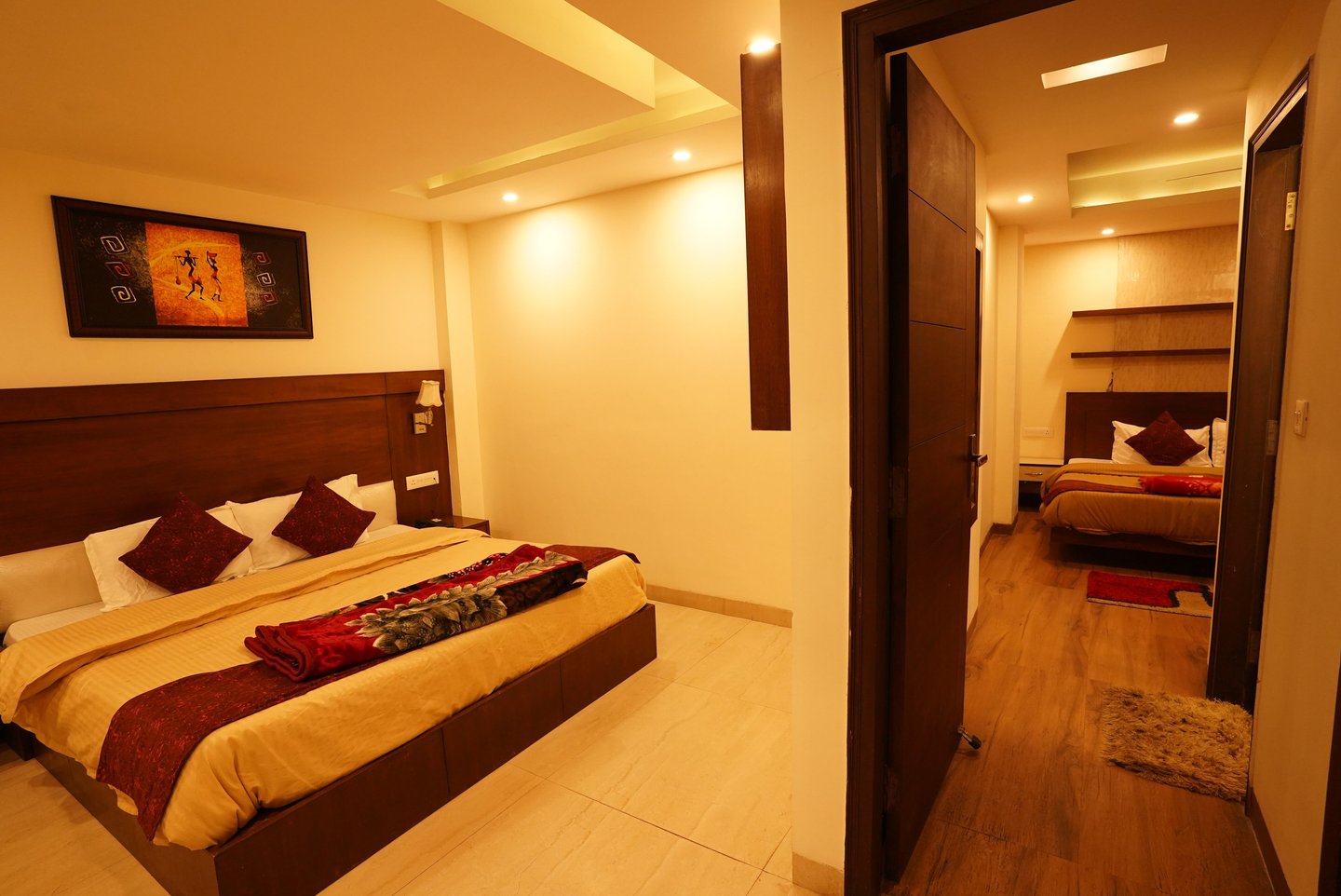Generously sized and sophisticated, our Deluxe Suite features a comfortable lounge area, two adjoining bedrooms, and two distinct bathrooms, equipped with luxurious facilities to ensure a pleasurable stay.