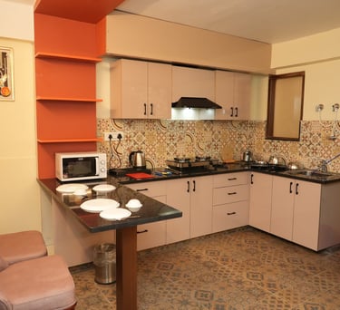 Perfect for families, this 1BHK apartment features a cozy bedroom, a well-equipped kitchen for your culinary adventures, and a balcony that offers a serene escape for relaxation and enjoying the view.