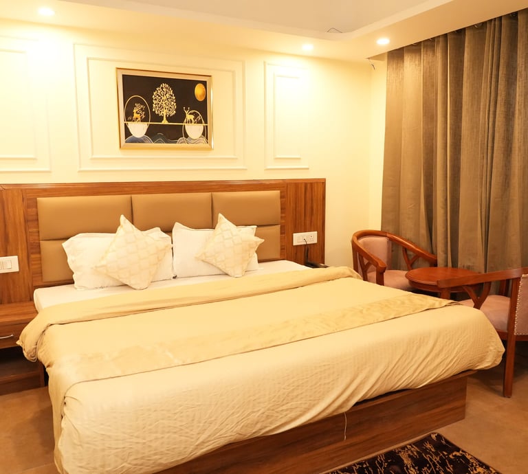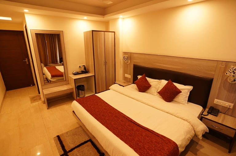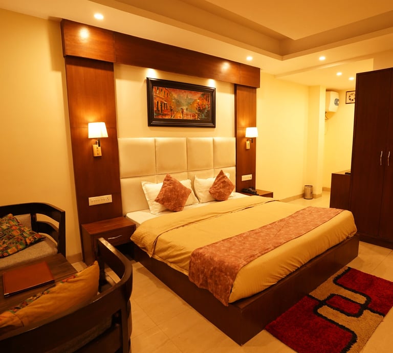 Our Semi Deluxe room is designed for comfort and style, featuring a spacious layout, modern furnishings, and convenient amenities to ensure a pleasant and enjoyable experience for every guest.