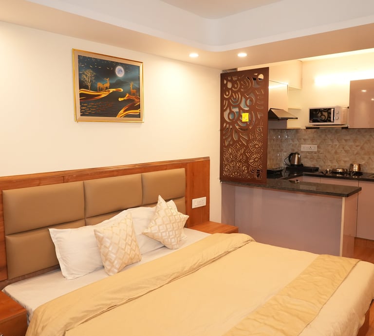 Budget-friendly and comforting, our Studio Room provides a warm atmosphere and fully-equipped kitchen to adhere essential needs for a restful retreat.